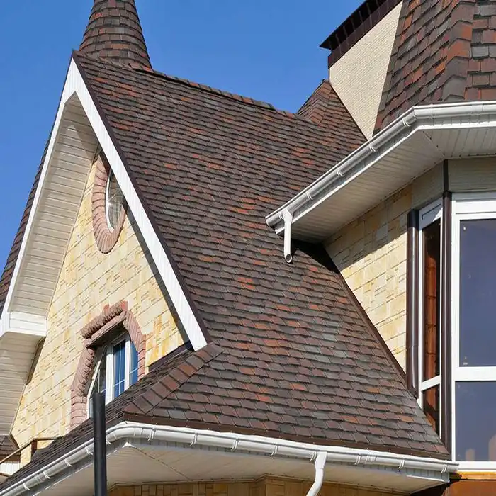 Гибкая черепица может применяться не только на малоэтажных жилых зданиях, но и при строительстве административных, жилых многоэтажных и других типов зданий.